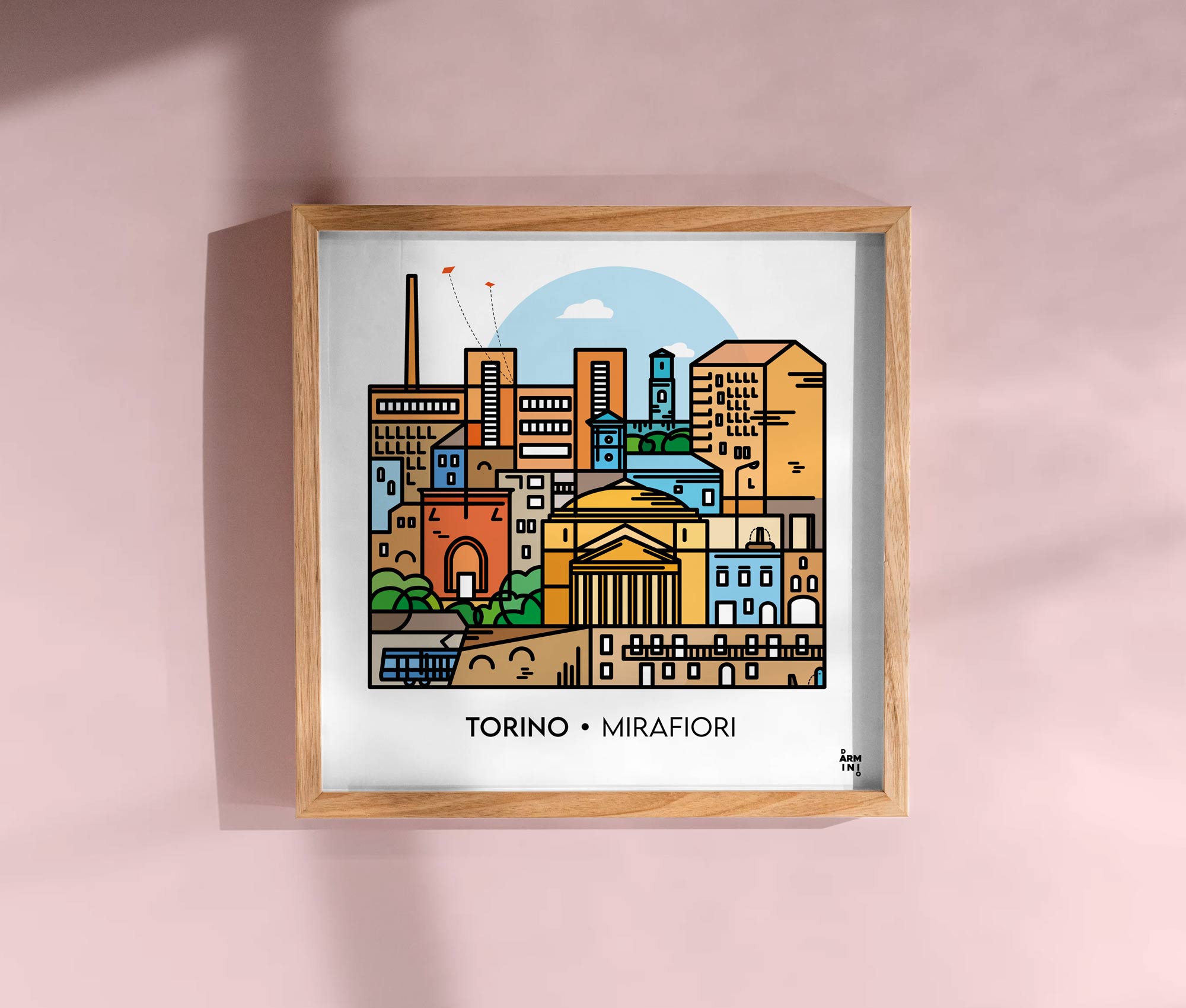 Illustrazione raffigurante il quartiere Mirafiori di Torino.